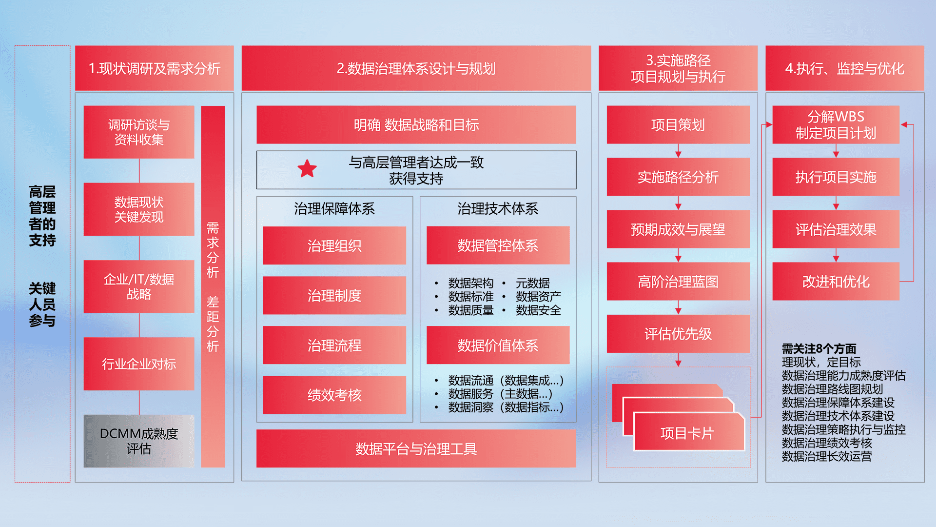 制定并执行统一的数据标准,,规范数据定义和格式,,消除冗余和不一致性,,,实现跨部门和跨系统的数据一致性,,,,为企业提供标准化的数据基础。。。。